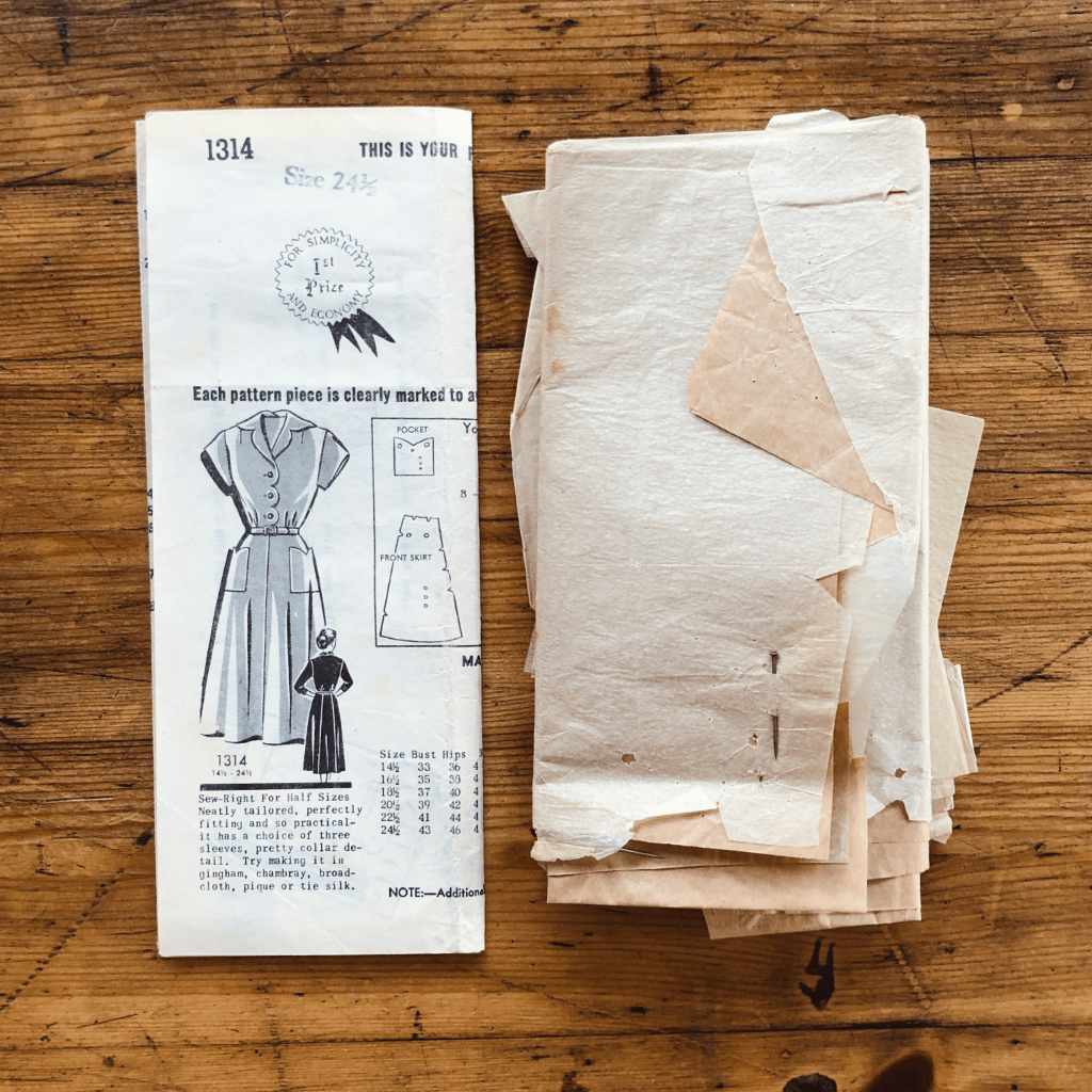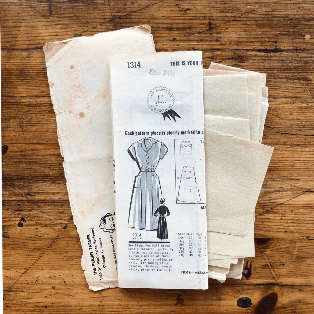 Prairie Farmer 1314; 1950s; size 24-1/2; 43″ Bust; Dress Pattern