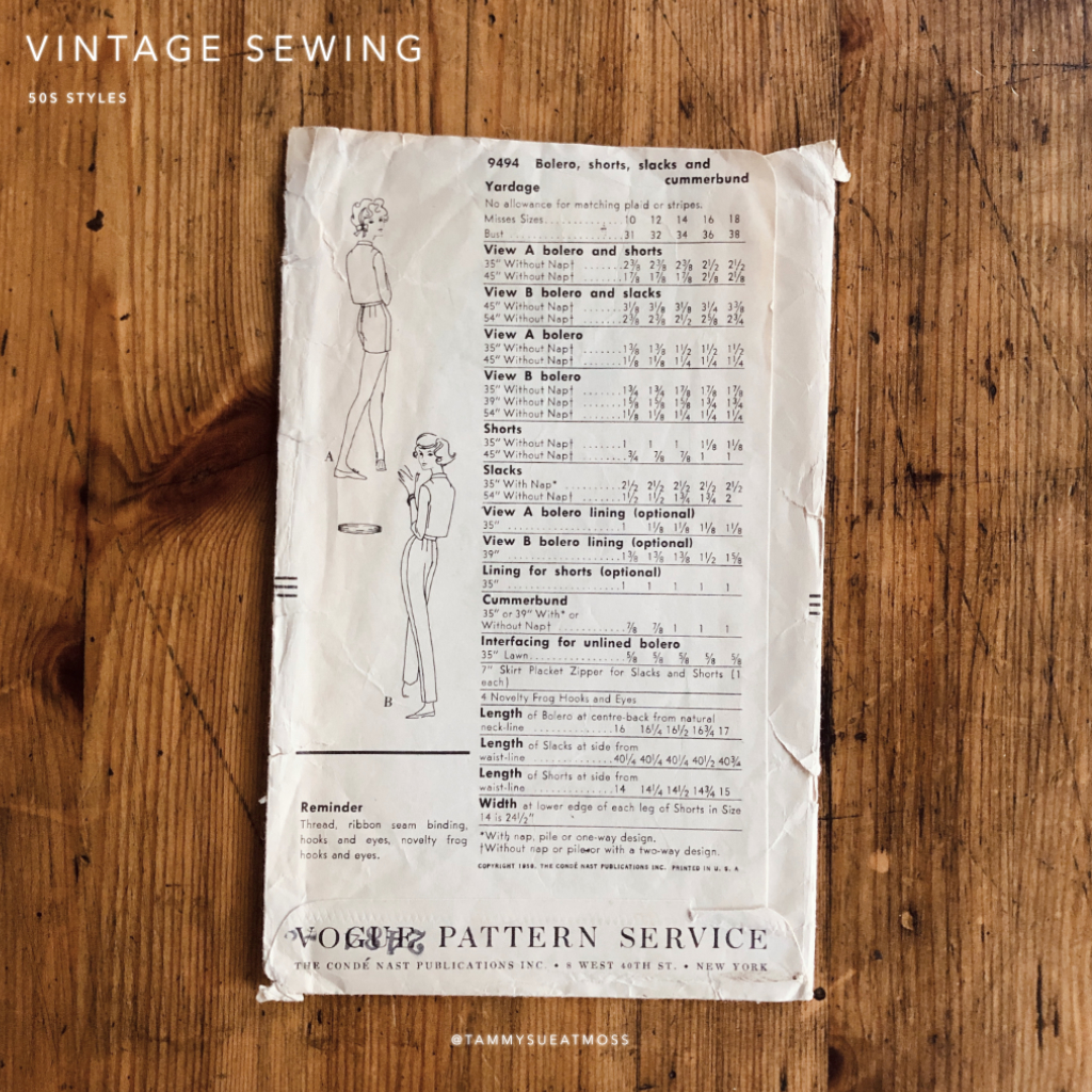 vogue #9494; ©1958; miss 12; bust 32″: bolero ensemble pattern