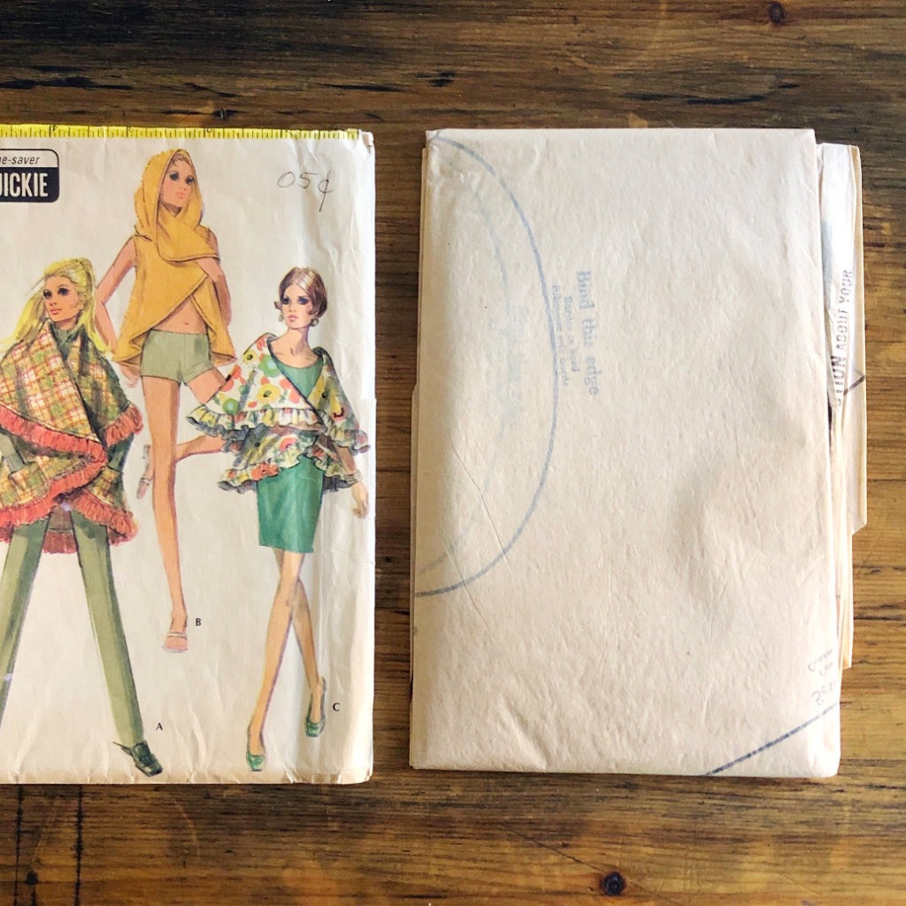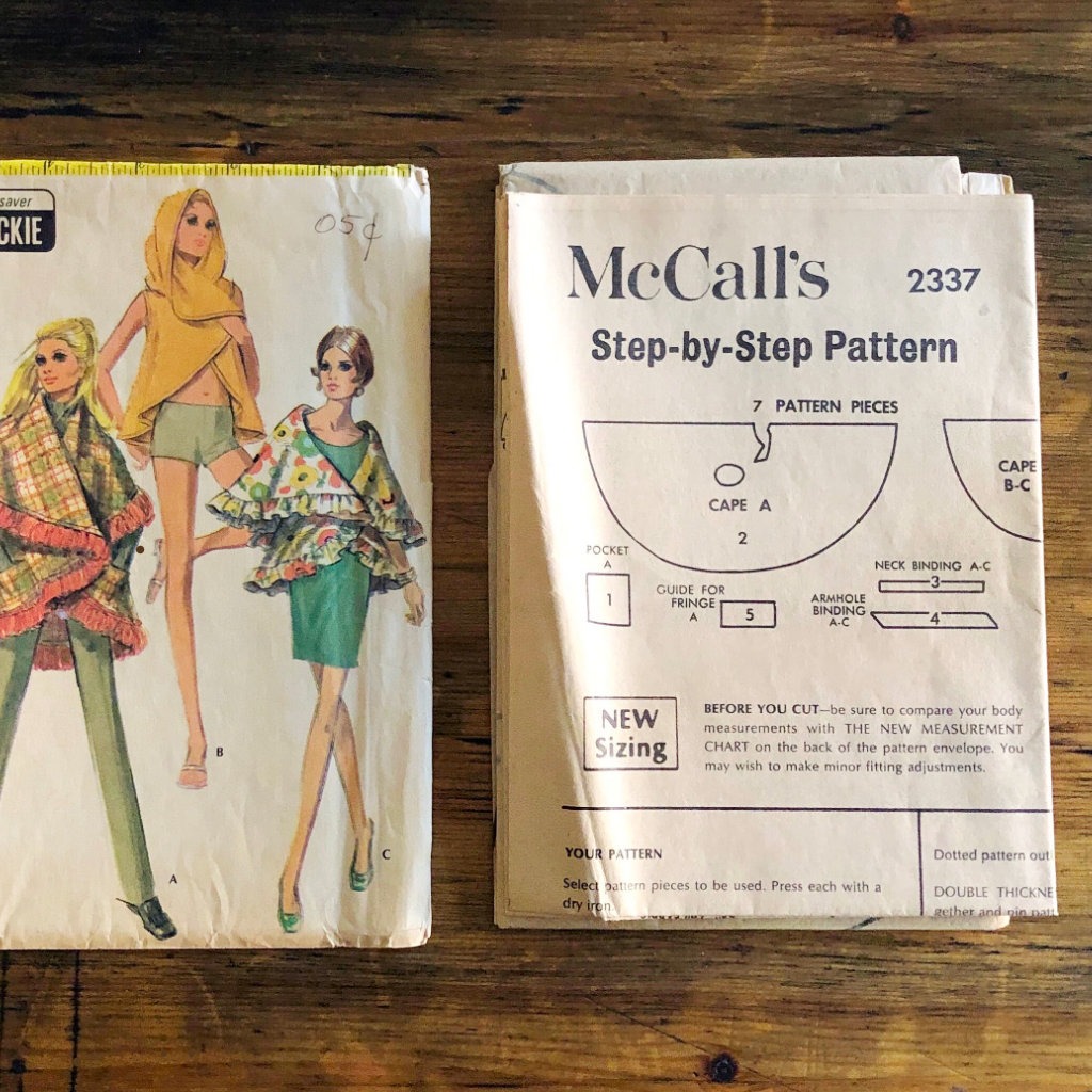 This is a very fun factory-folded 70s vintage original accessory pattern for a circular cape, one size fits all – with or without a hood.