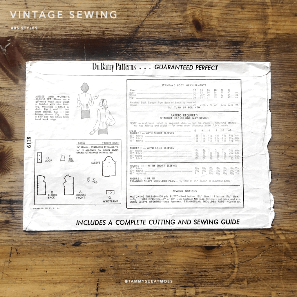 dubarry #6128; ©1945; miss 12; bust 30“; dubarry blouse set pattern