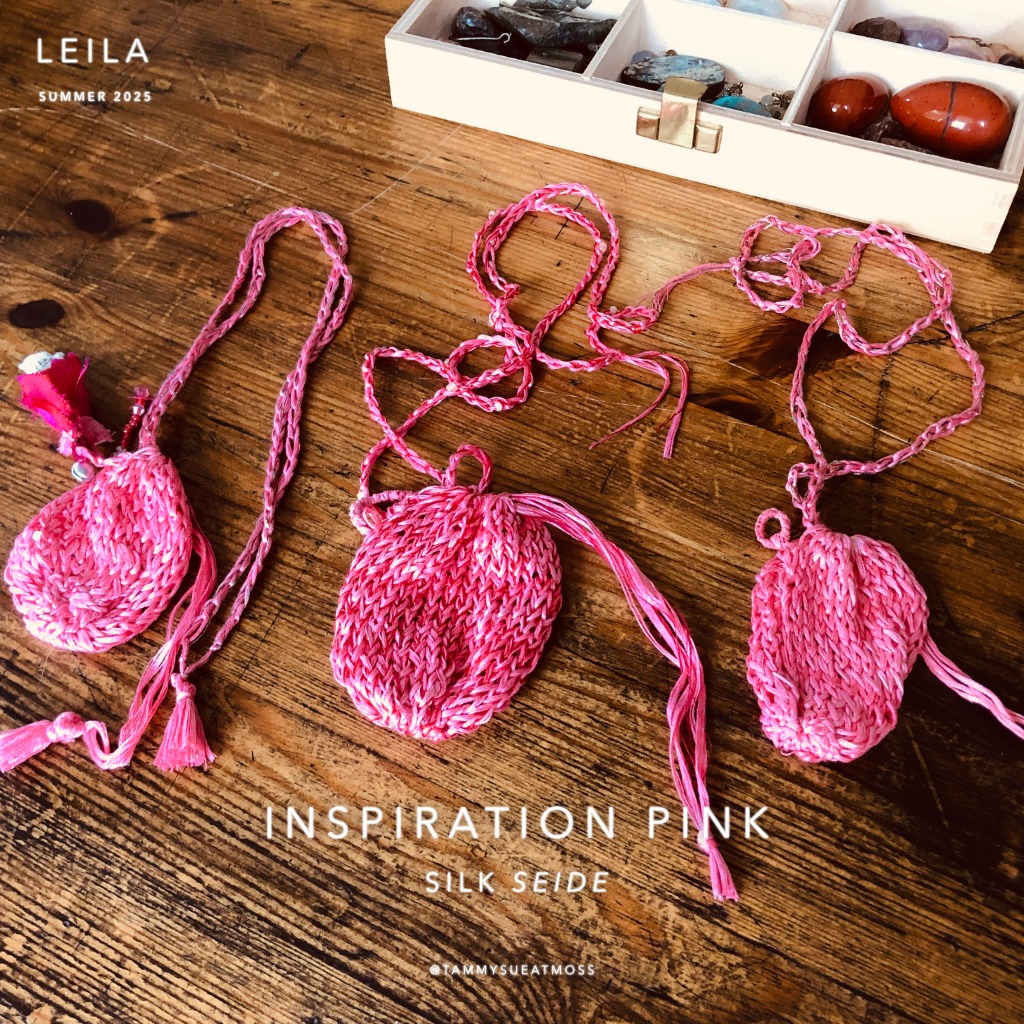 This pink silk version is pre-washed. The chain has a metallic gold stone thread woven in. This is a basic version with hanging loop. If you would like a charm added, it’s possible. The talisman dolls are custom-made and can be added to any plain version for 15€. Checkout this listing: SS25 leila charm add-ons