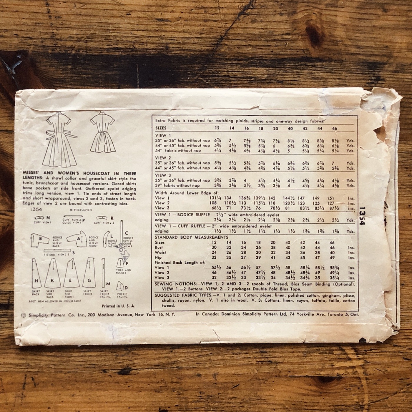 simplicity 1354; ©1955; bust 32″; miss 14: brunch or housecoat pattern
